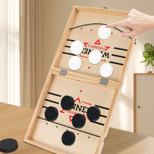 Sporiți divertismentul familiei dvs. cu Jocul Mare cu Praștie și Puc, un joc de masă durabil, confecționat din lemn, pentru ore de distracție.