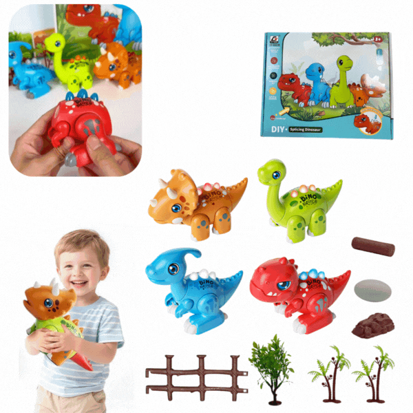 Copiii pot construi singuri diferite tipuri de dinozauri și își pot crea propriile combinații unice. Jucăria dezvoltă gândirea logică și îndemânarea.