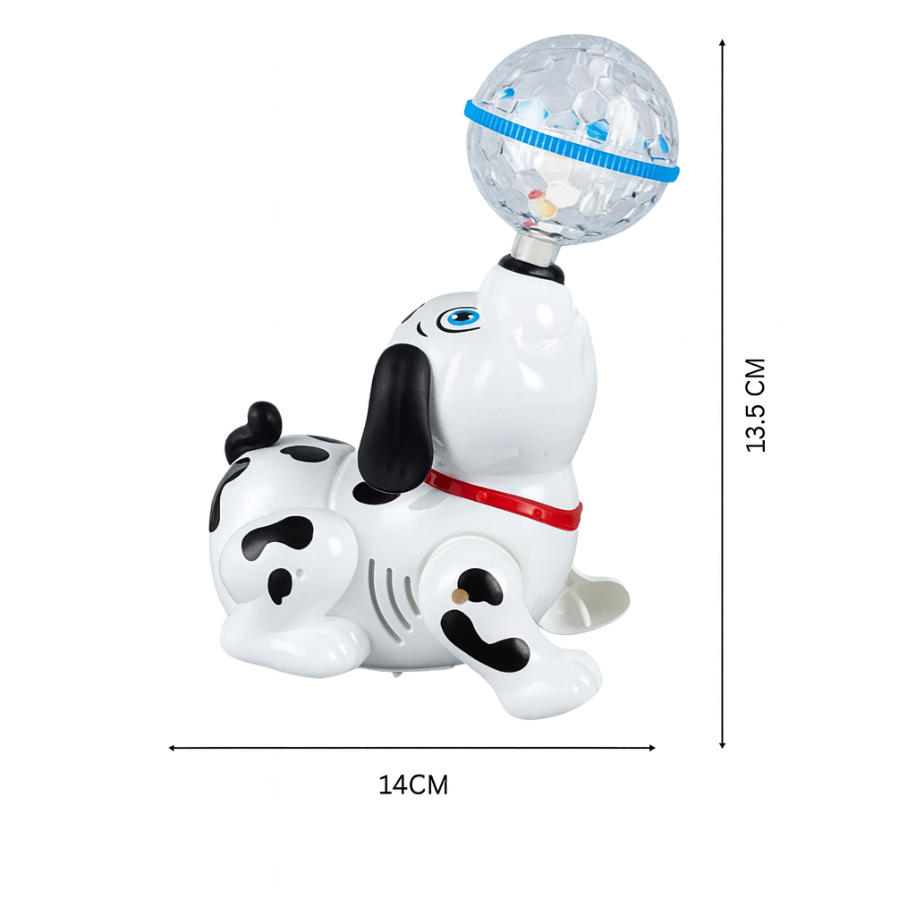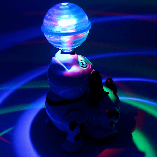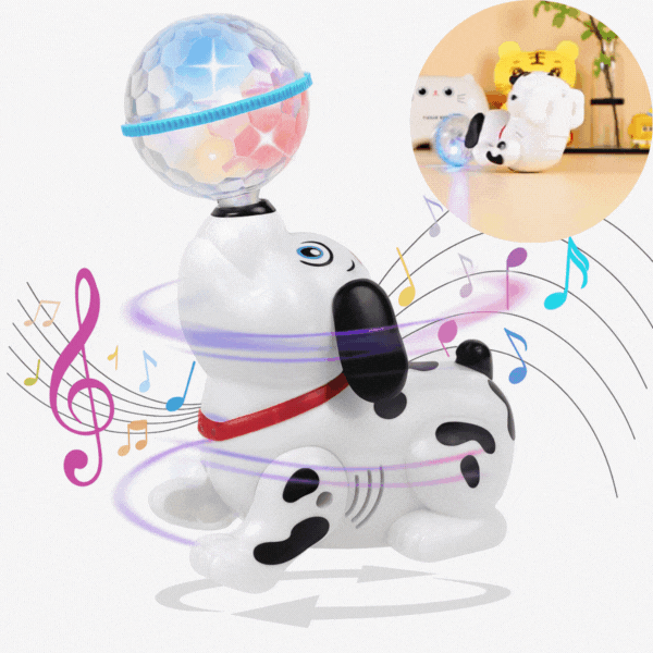 🐶 cățeluș care dansează, luminează și se rotește la 360°